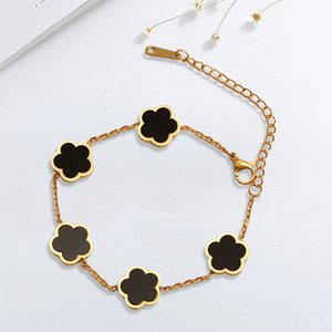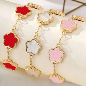 跨境热卖五瓣花手链女生时尚百搭幸运五叶花朵首饰不掉色合金饰品
