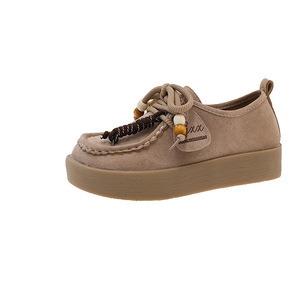厚底袋鼠鞋系带全包勃肯鞋子女秋季新款复古磨砂皮单鞋休闲乐福鞋