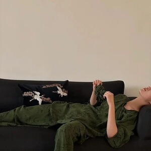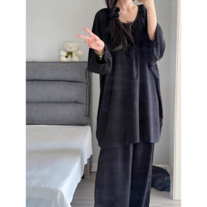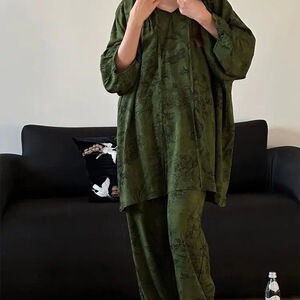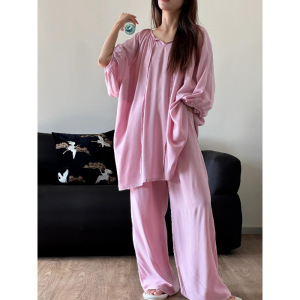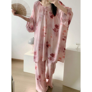 夏季女士睡衣圆领 云朵棉 长袖长裤 套装【无带胸垫】【M-5XL】