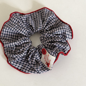 3#ネイビーブルーのカイトストライプリボンヘアゴム