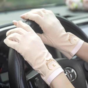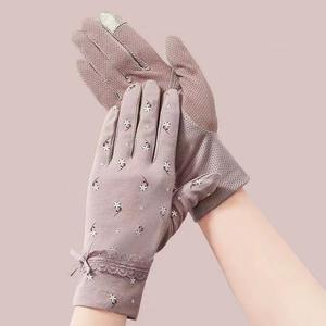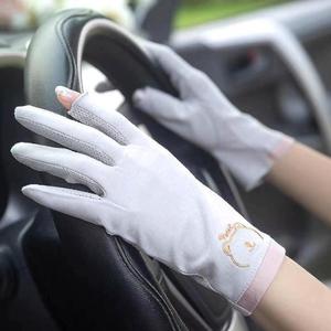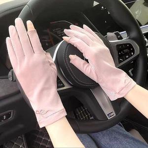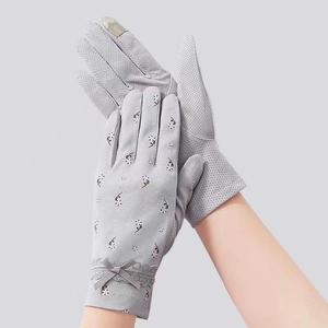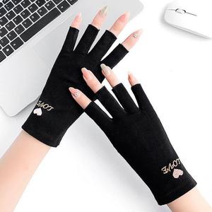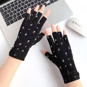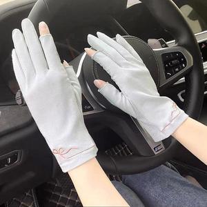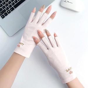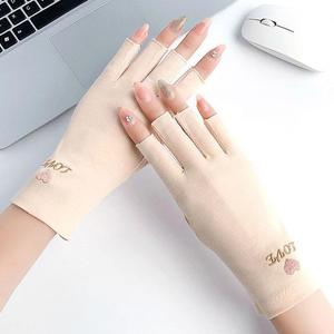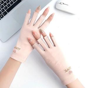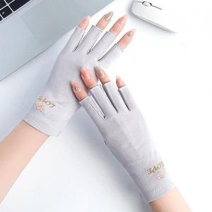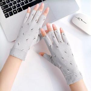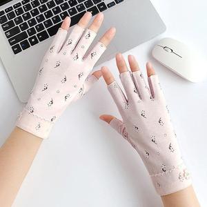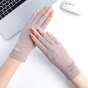 女性用日焼け止めハーフフィンガーグローブ、夏用薄手綿、紫外線防止、運転と乗馬、滑り止め、通気性、お茶の露、2本指マニキュア