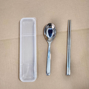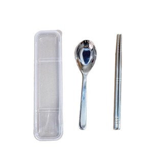 304不锈钢便携餐具套装勺子筷子收纳盒学生餐具平底勺韩式勺汤匙