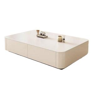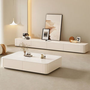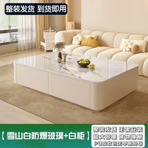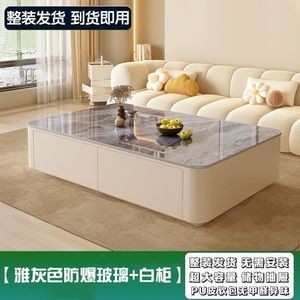 奶油风玻璃茶几电视柜组合客厅家用落地小户型轻奢现代简约奶油风