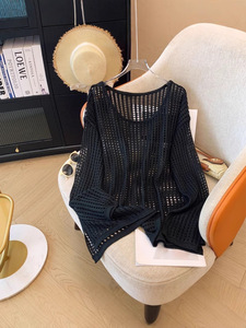 薄款镂空短袖针织衫女2025新款夏季设计感小众宽松短款别致上衣潮
