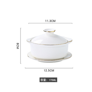4.5inch 両耳蓋スープカップ + 底皿 (ゴールドリム) 220ML