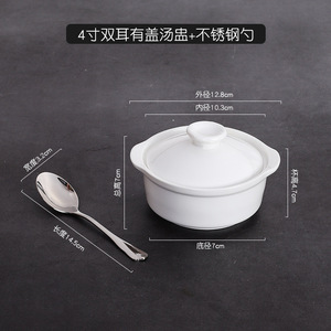 両耳蓋付きスープカップ+底皿+磁器スプーン160ML 4inch個