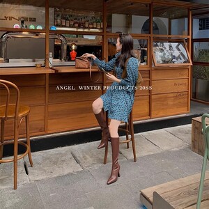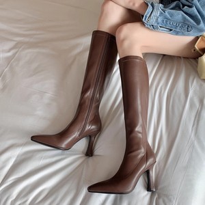 2025秋冬新款尖头长筒靴女白色长靴细跟弹力靴子高跟瘦瘦靴不过膝