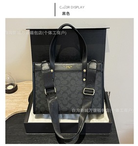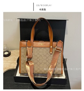 跨境蔻家复古印花手提包子母包女2025新款百搭宽带单肩斜挎包托特