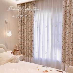 小花兔子 奶油法式儿童房可爱卡通公主女孩卧室遮光裙摆窗帘设计