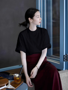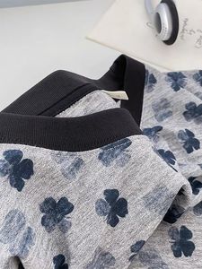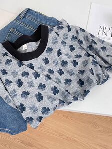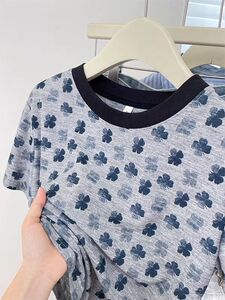 撞色圆领短袖T恤女渐变四叶草夏季薄款透气宽松减龄百搭休闲上衣
