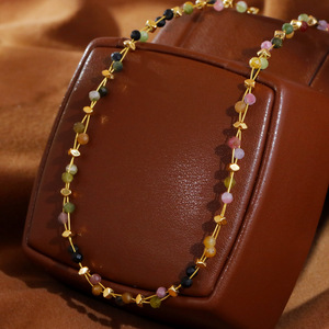 彩虹项链错落碧玺珠串珠项链女 个性甜酷波西米亚风多巴胺锁骨链