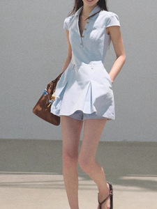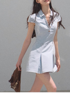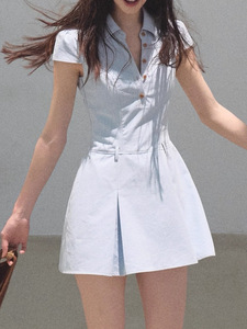 OAKMOO/ "夏日蝉鸣" 牛仔学院风V领polo收腰连衣裙A字掐腰短裙子