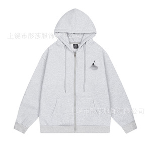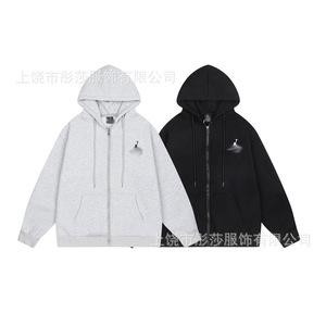 2025潮牌AJ飞人男女情侣加绒卫衣外套上衣连帽衫刺绣外套外贸批发