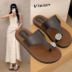 拖鞋女夏季2025新款软底裙子海边休闲网红沙滩夹复古气质外穿凉拖