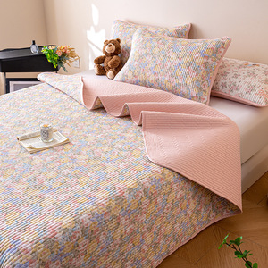 A类母婴级四季适用全棉床盖套件小清新水洗棉夹棉榻榻米防滑盖毯