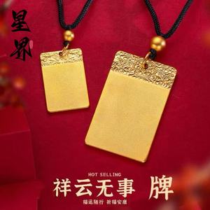 金店同款古法沙金祥云无事牌吊坠新中式平安无事牌挂坠货源批发