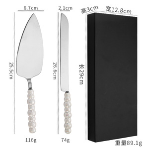 跨境珍珠陶瓷柄不锈钢蛋糕刀铲套装家用烘焙奶酪刀高颜值披萨刀铲