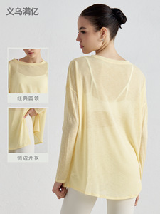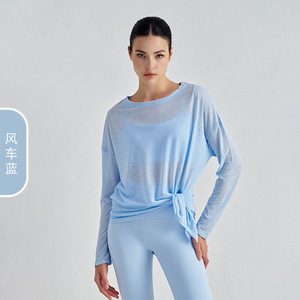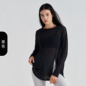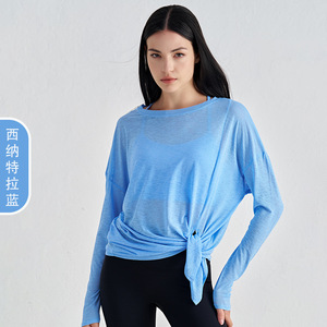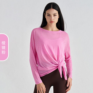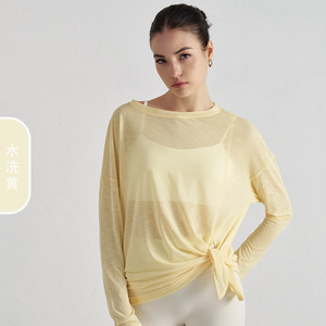 竹糸通気性のある夏のヨガブラウス女性のスリット痩身スポーツフィットネストップスゆったりと軽いヨガ服長袖