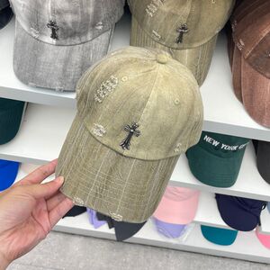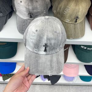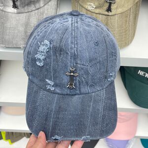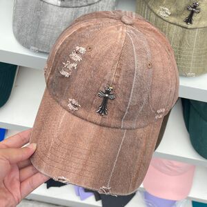 美式水洗做旧破洞十字棒球帽女时尚街头休闲百搭软顶鸭舌帽遮阳帽