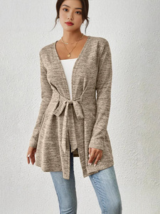 女士秋冬季新款亚马逊2025纯色长袖系带休闲宽松开衫上衣女装外套