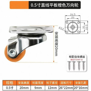 0.8寸平板万向轮-配螺丝【橙色轮】