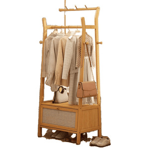 リビングルーム家庭用ホイールフロアハンギング寝室コートラック洋服ハンガーフロアハンガー竹垂直フロア