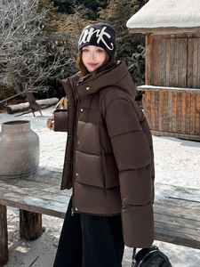 连帽高端短款棉服女2025冬季新款小个子面包服加厚宽松羽绒棉外套