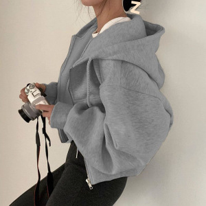 2025 ins ベルベット多用途ファッショナブルなショートスリムジッパースウェットシャツ女性用