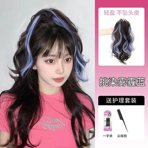 ハイライトブルーのウォーターフォールハーフタイポニーテール