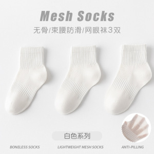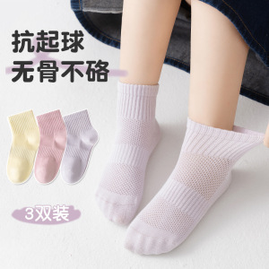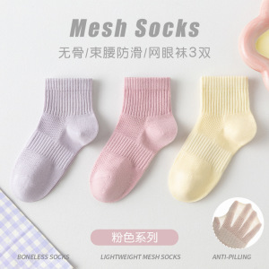 夏季薄款儿童棉袜网眼吸汗透气抗起球马卡龙色系男童女童中筒袜子