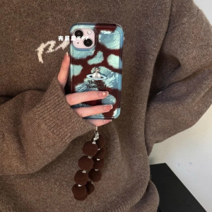 レトロなアンバー ブルー パターン Apple 電話ケース Apple//落下防止女性モデル