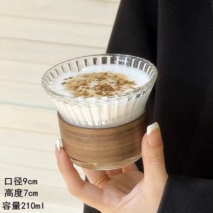 小众渐变绿竖纹玻璃杯家用防烫竹套喝水杯ins高级感咖啡杯冷饮杯