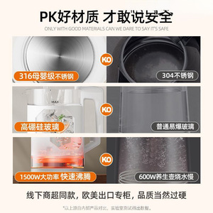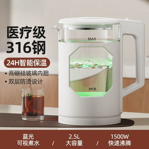 加热加厚316不锈钢烧水壶家用耐用高硼硅玻璃大容量恒保温电热水