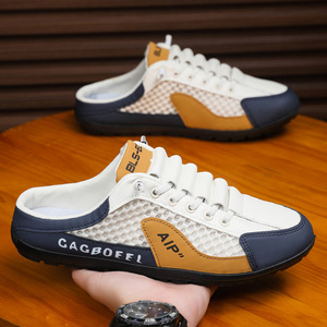 包头半托鞋男夏季新款网面透气一脚蹬懒人鞋时尚百搭透气网鞋