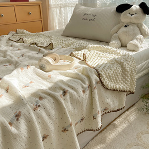 儿童全棉皱皱纱豆豆毯四季宝宝毯婴儿纱布盖毯幼儿园午睡毯子薄被