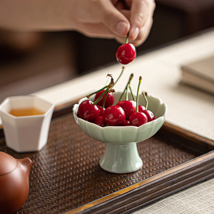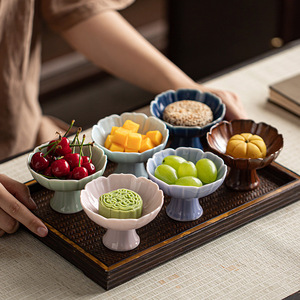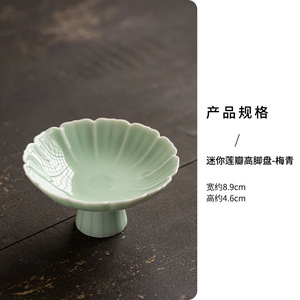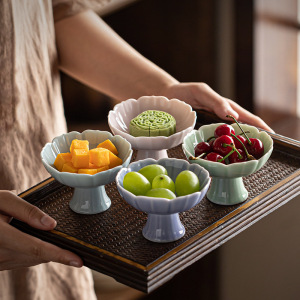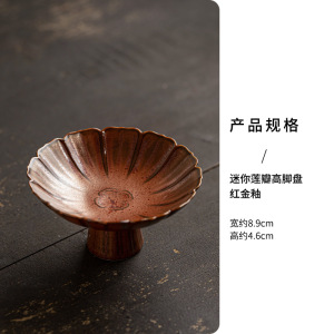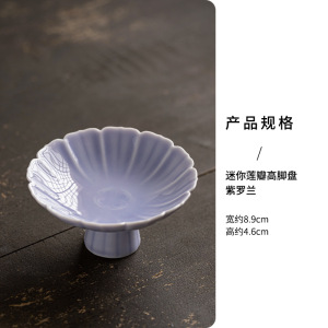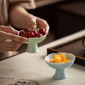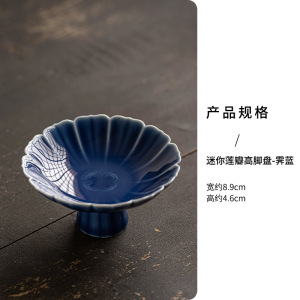 陶瓷小号精致高足点心盘中式高脚茶点盘复古禅意干果家用水果盘子