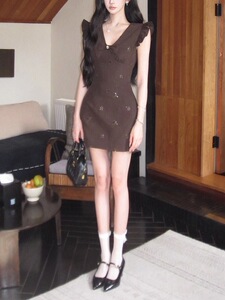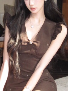 烂漫千金 手工珠花特制V领蝴蝶结立裁小飞袖背心裙新品85折
