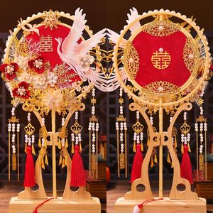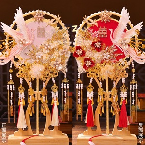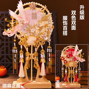 团扇新娘结婚双色双面新婚礼物送新娘出嫁闺蜜喜扇手工diy材料包