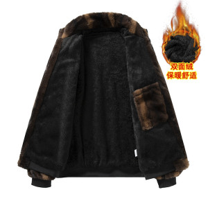 2025冬季新款立领抓绒休闲夹克纯色加绒连帽开衫外套一件代发