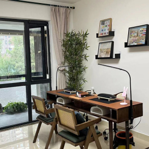 实木胡桃色美甲桌美式复古美甲台单双人吸尘器美甲桌椅套装经济型