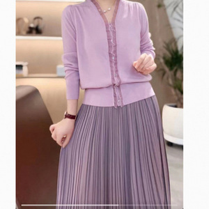 早秋女新款2024套装气质小香风时尚V领针织开衫高腰显瘦a字百褶裙