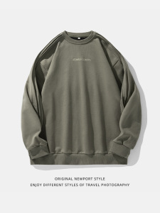 400 グラムヘビーウェイトアメリカンラウンドネックスウェットシャツ男性と女性のための春の新しい袖ルーズリーフデザインルーズカジュアルプルオーバートップ