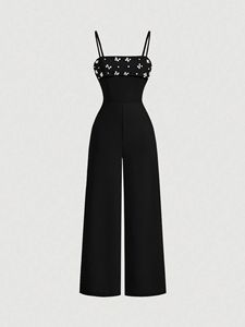ZT6493 2025春夏新款无袖高腰连体裤纯色阔腿裤气质名媛风