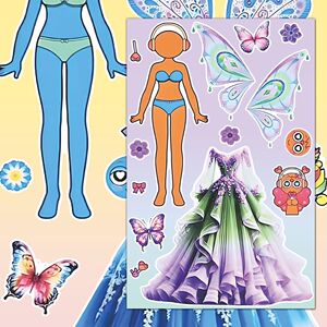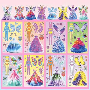 节奏盒子换装贴纸公主裙翅膀女孩趣味换装玩具自粘胶装饰防水贴画