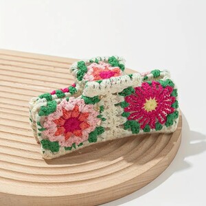 新款可爱大号法式针织钩花抓夹草莓发夹海边度假风鲨鱼夹发饰批发