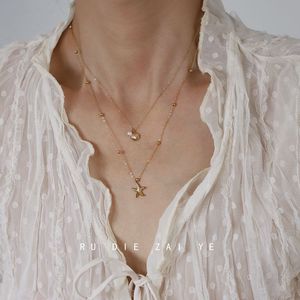 クーニングは色褪せない! ヒトデ貝のチタン鋼二層ネックレス、ハイエンドのリゾートスタイル、シャワー時に外す必要のない鎖骨チェーン