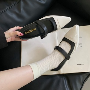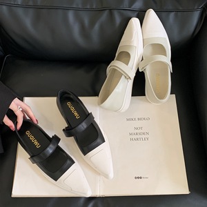欧美尖头英伦风小皮鞋女2025春新款布洛克休闲鞋平底玛丽珍鞋单鞋