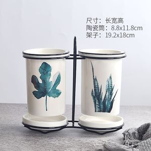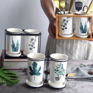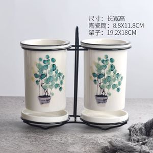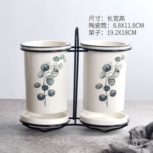北欧筷子筒陶瓷台面圆形沥水收纳置物架厨房筷盒桶日式国潮笼架篓