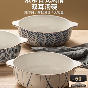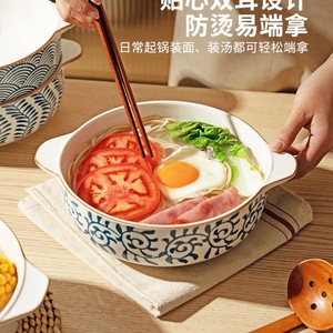 双耳汤碗家用2025新款大号面碗日式陶瓷汤盆酸菜鱼大盆碗