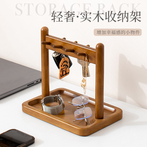 创意玄关木质钥匙收纳架摆件桌面实木置物架地摊珠宝木质首饰架